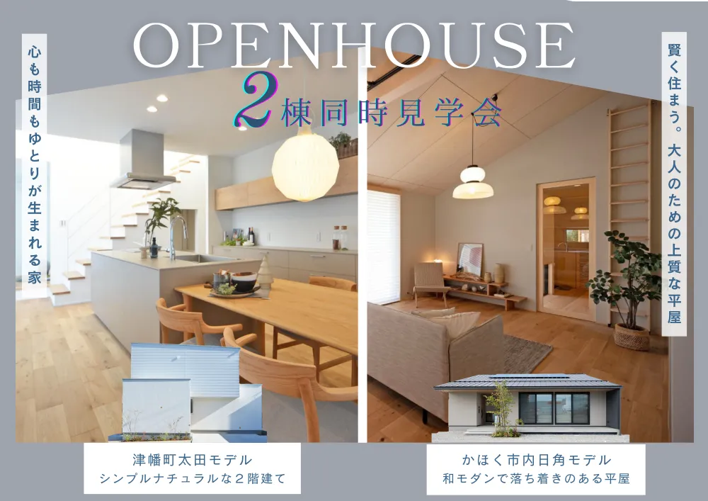 2026年1月3日(土)~18日(日)限定|2棟同時見学会開催【津幡町太田 × かほく市内日角】ー2階建てと平屋、二通りの暮らしのかたちー