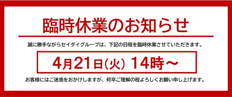 臨時休業のお知らせ
