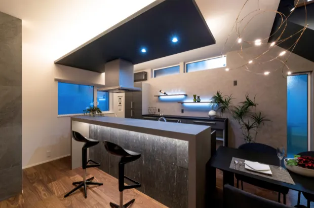 壁面の凹凸や素材の質感を浮かび上がらせる間接照明は、夜の住まいを美しく魅せます。