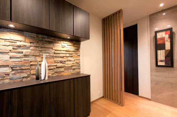 視線の先にアクセントウォールを設けることで住まい全体の美しさがより一層際立ちます。