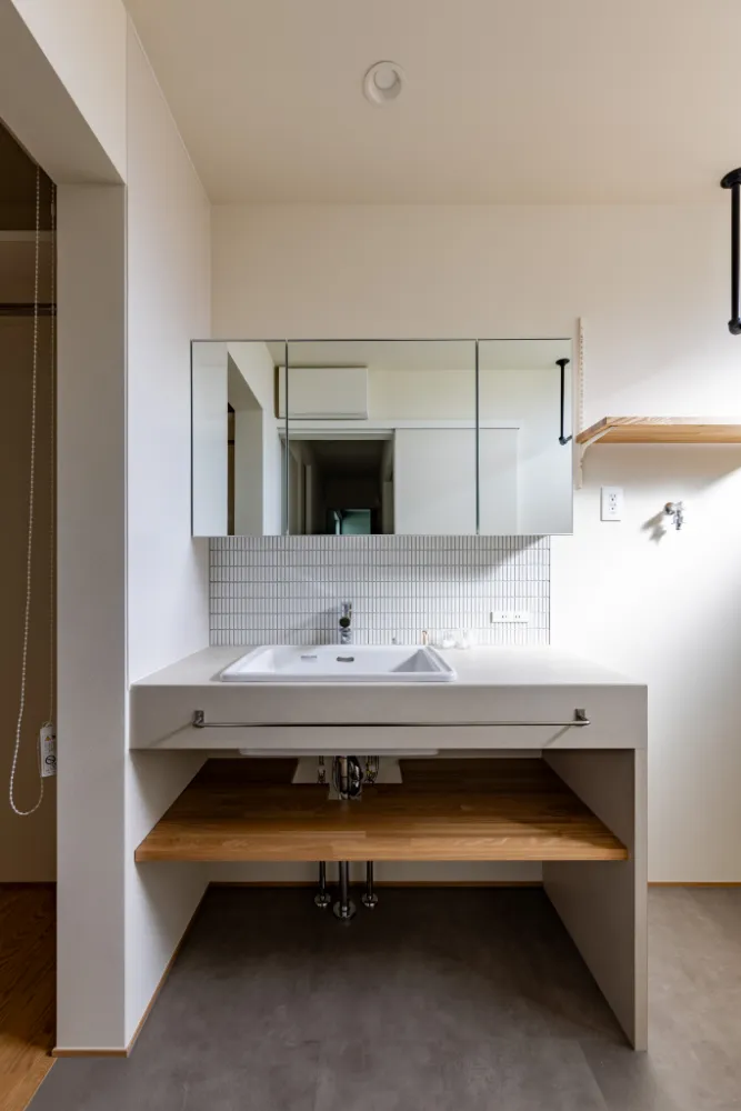 ファミリークロークとLDKからアクセスできる洗面はサンルームと一体に。