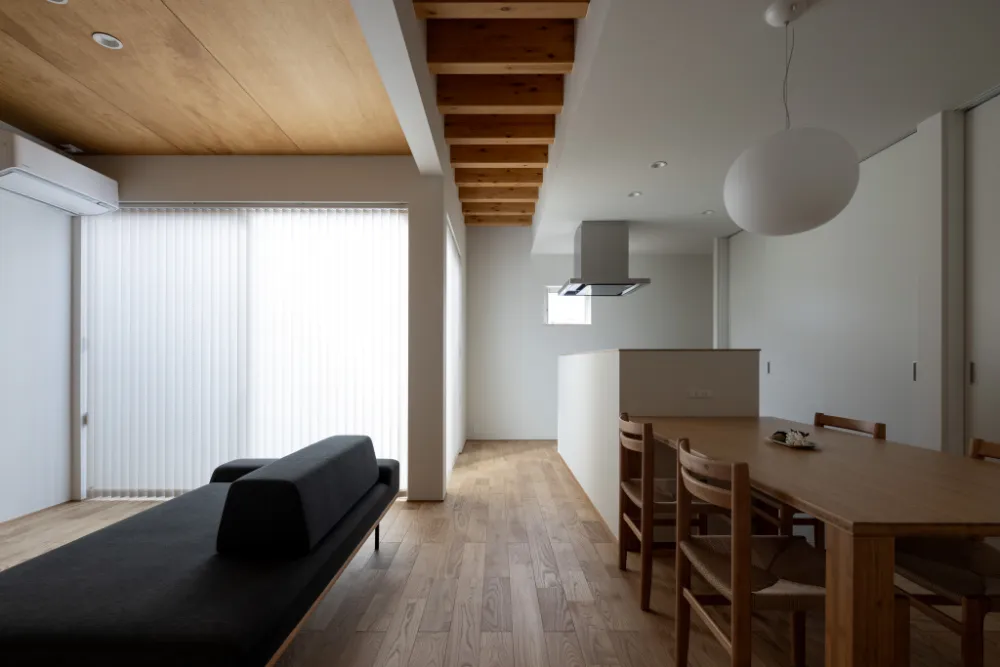 シナベニヤ貼りの天井とスリット天井。 シンプルにまとめた内装がより素材感を引き立てます。