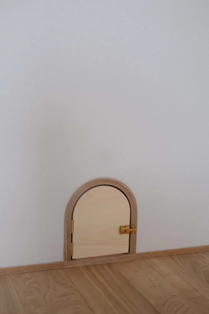 書斎には寝室とつながる猫穴を付けました。 真鍮製の金具を取り付けたこだわりの猫穴です。