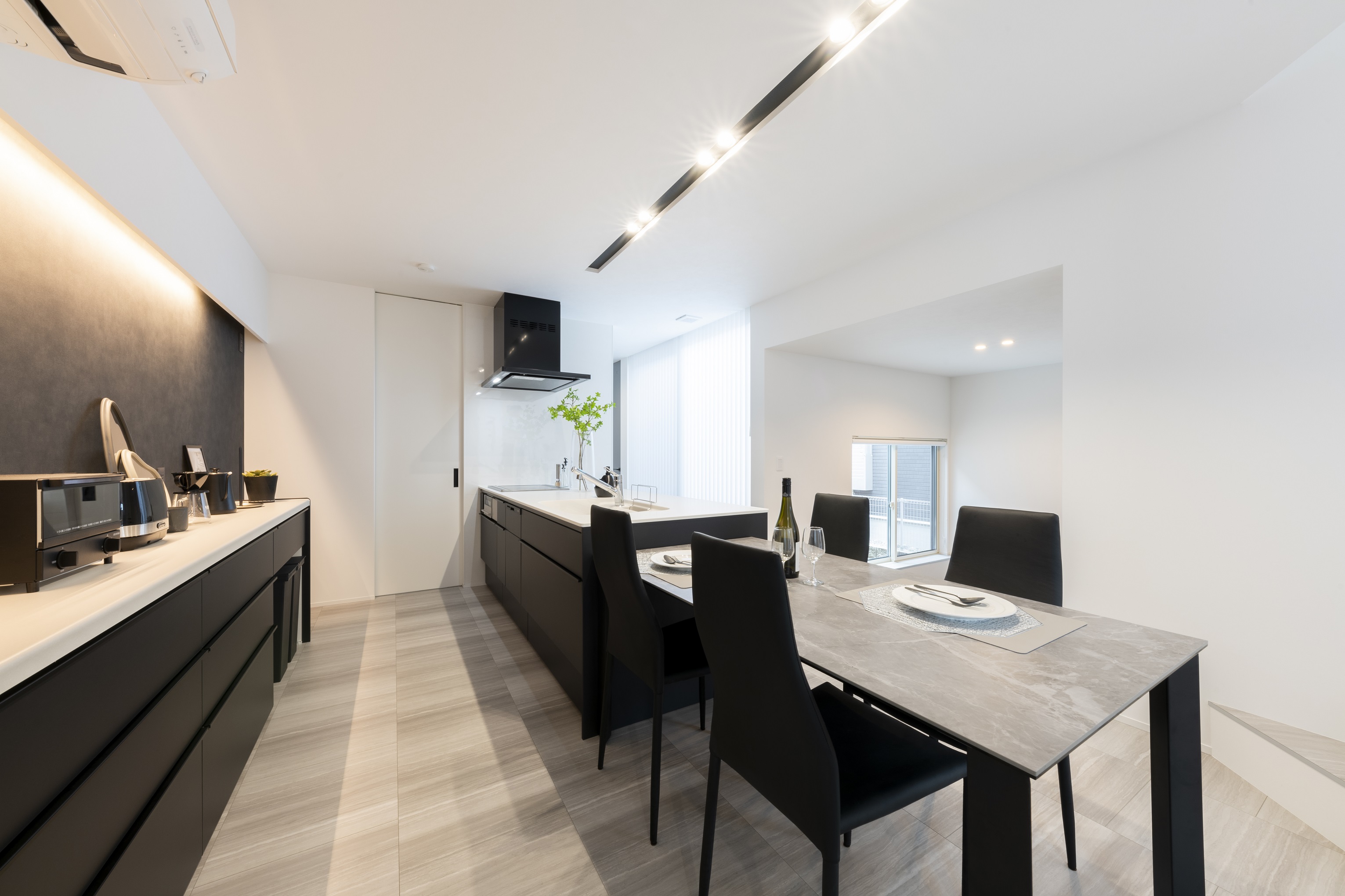 憧れのオープンキッチン!生活感を隠せる収納計画もバッチリです。ダイニングは配膳ラクラクのサイドダイニングに。