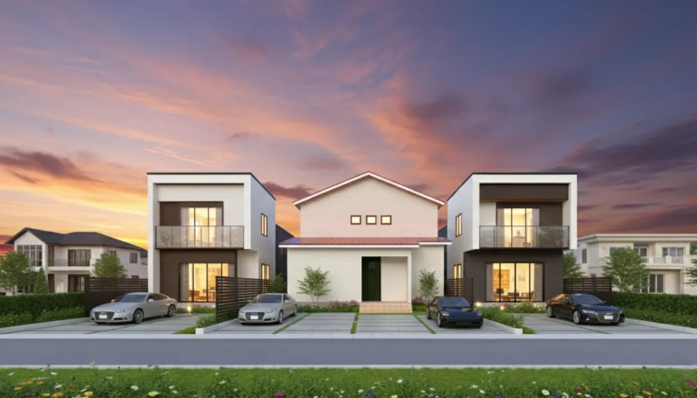 深い赤い屋根と白い外壁がつくる、印象的なコントラスト。 やわらかい雰囲気なのに、どこか凛としていて、毎日の「ただいま」を少し特別にしてくれる佇まいです。 可愛いけれど甘すぎない、大人が惹かれる"上品な可愛さ“を纏った外観です。