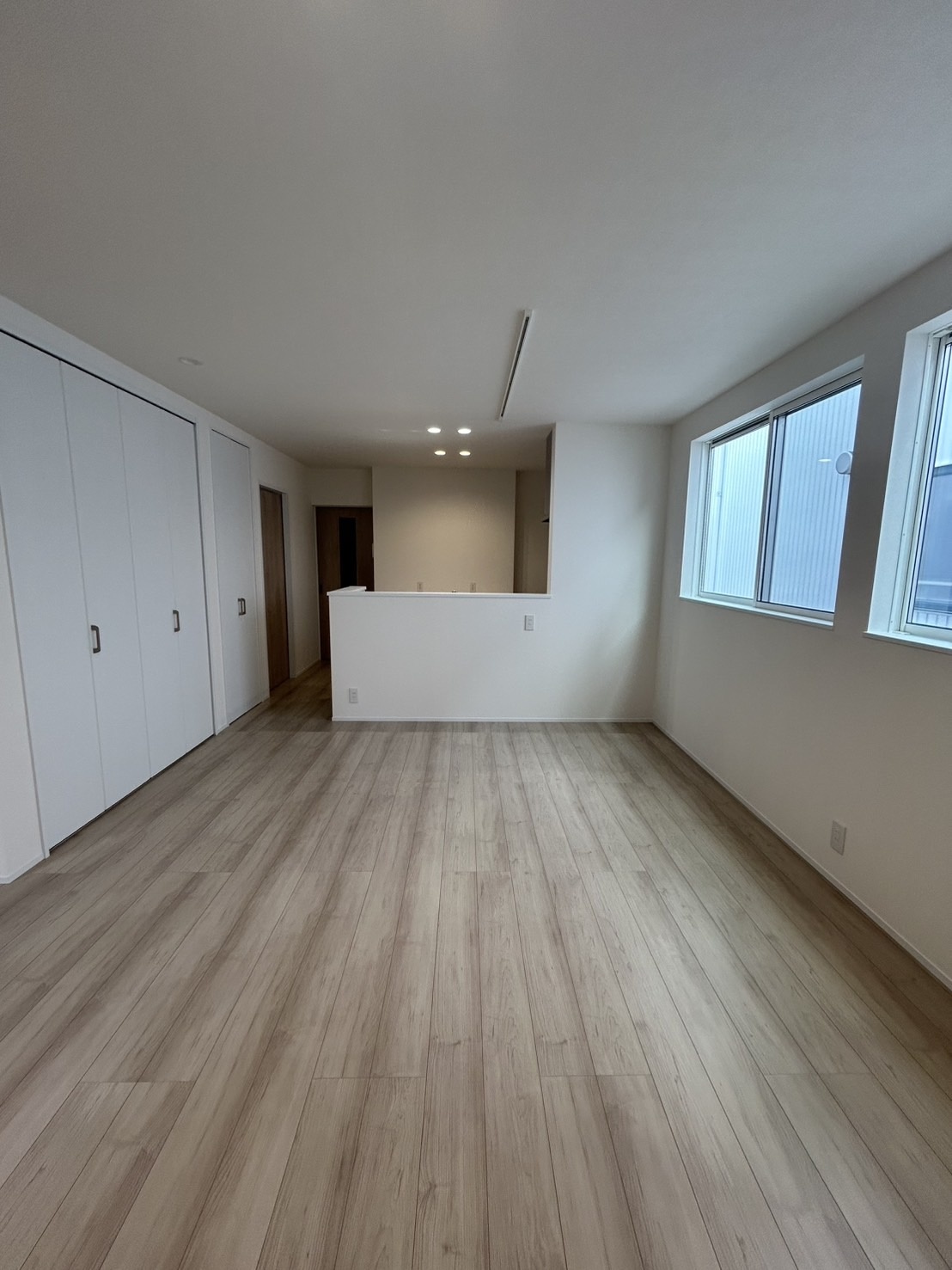 リビングに隣接した和室はお昼寝をしたり、お子さんの勉強スペースにもなります。 仕切りがないので開放的でスッキリしています。