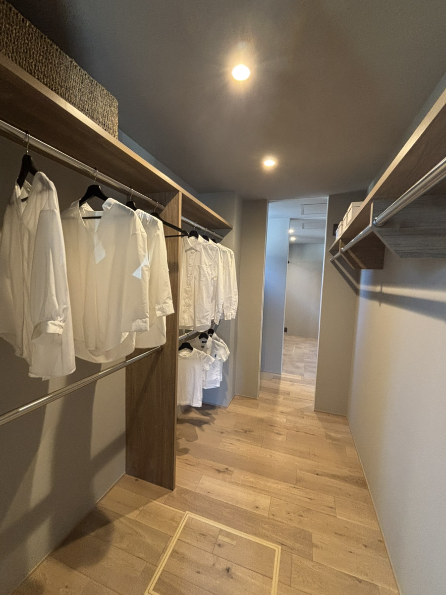 キッチン裏は、お風呂や洗濯スペースをまとめて配置。家事をするときに移動が少なくなり、時間を節約。