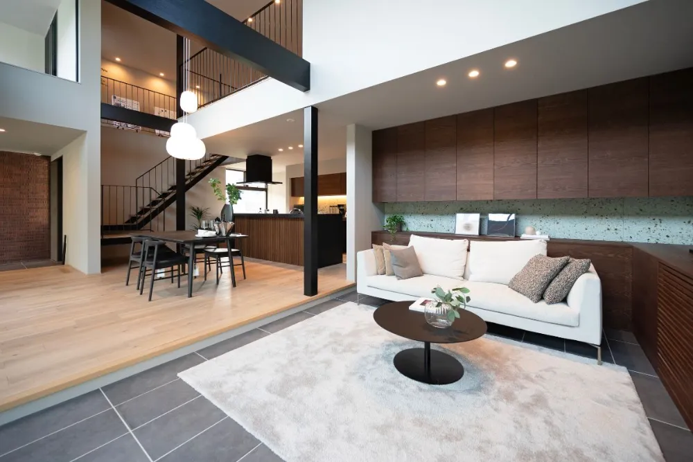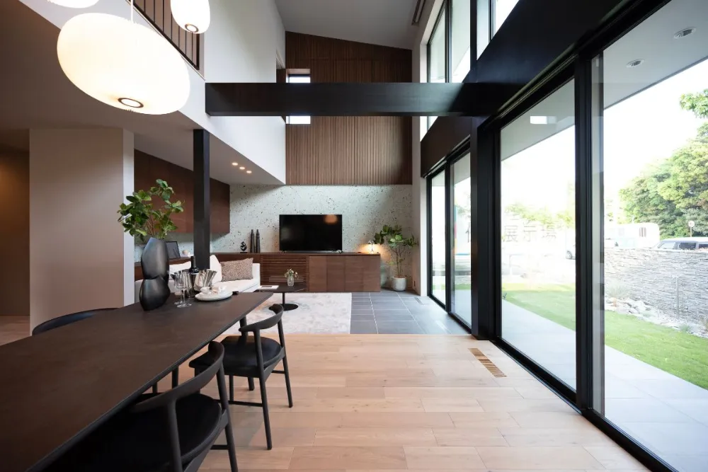 外とのつながりを感じ、日常が映える特別な空間。 北欧インテリアショップ「ACTUS」の家具がヴィラのようなデザインにマッチし、非日常感を演出してくれます。